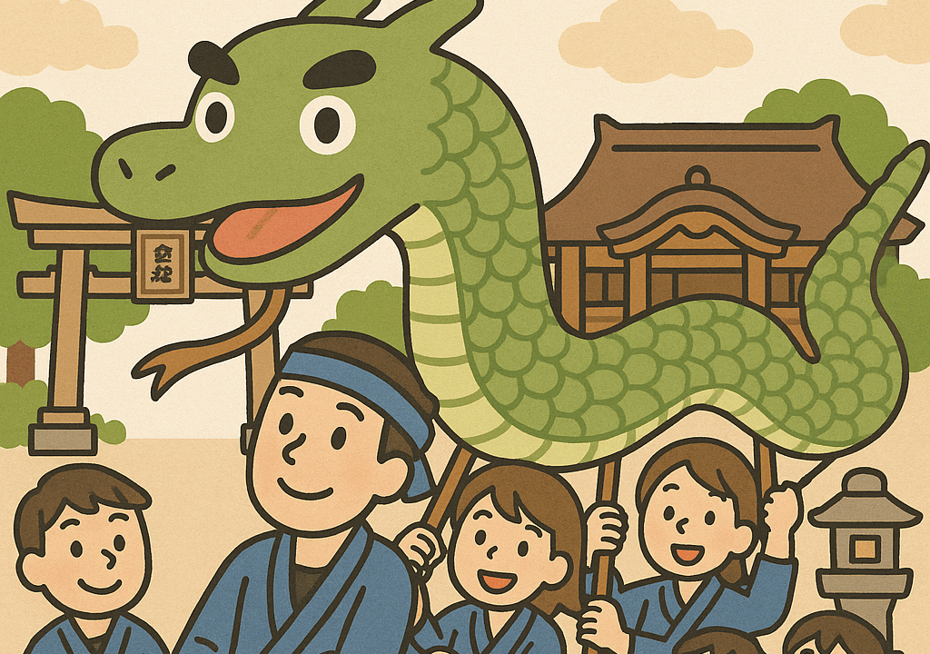 この奇跡に感謝した村人たちは、藁と竹で白大蛇を模した巨体を作り、太鼓と笛の音に合わせて村を練り歩く行事を始めた。蛇の口には鈴が吊るされ、頭には五色の布が飾られた。その姿はまさに神の化身であり、悪疫退散・五穀豊穣を願う祈りの象徴となった。